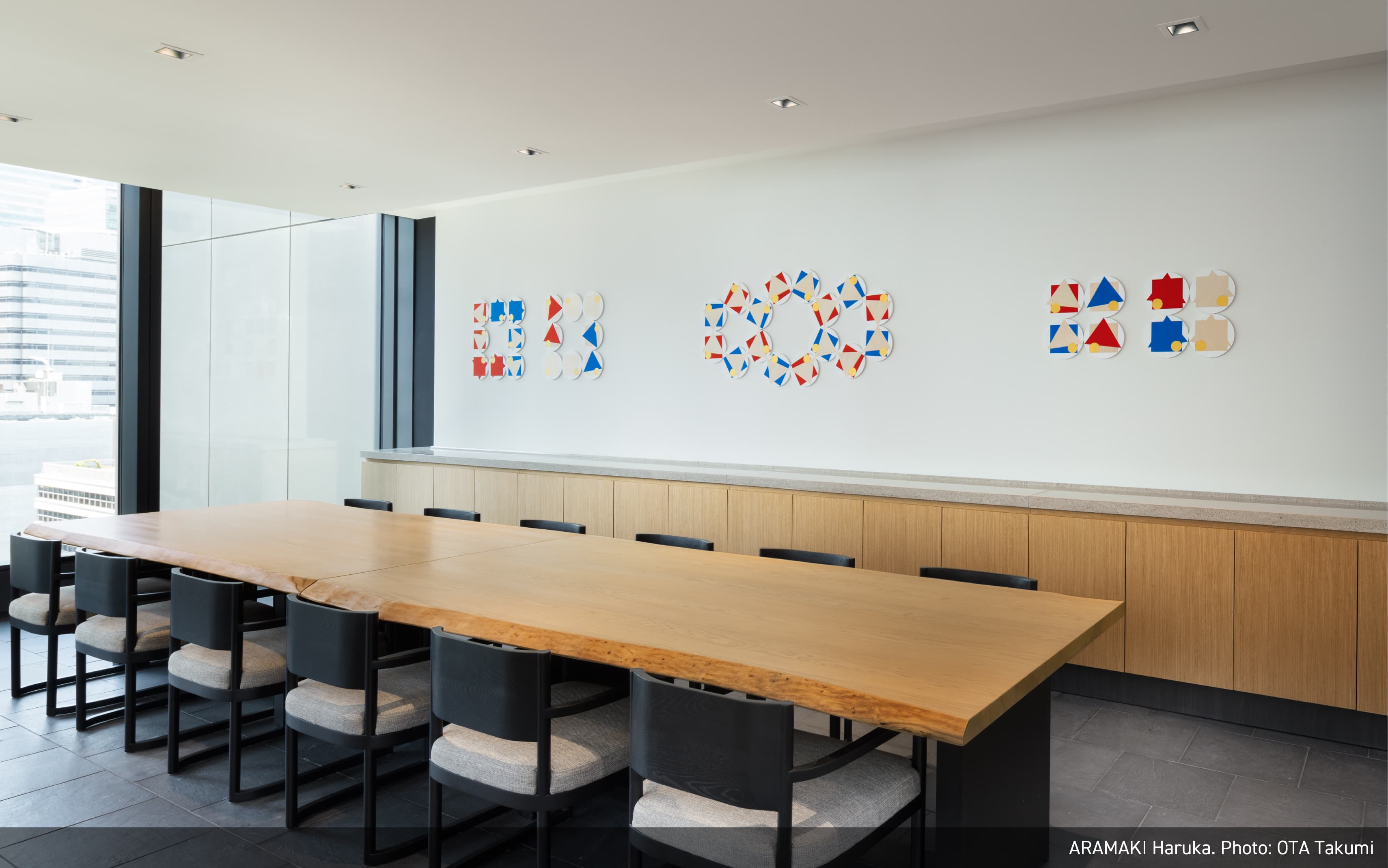 江戸時代からの歴史的なコンテクストとこれからの時代をつなぐように、陶、竹、漆、日本画といった伝統的な素材と技術の上に、新しい表現を模索する作家を意識的に起用、また、建物の江戸切子をモチーフとした意匠などとの連続性を意識し、幾何学模様を取り入れた作品を複数採用しました。そして東アジアの思索の伝統を下敷きに、自然素材や自然の力をモチーフにした作品を含めています。それは持続可能な社会の実現を願う意志の表明でもあります。