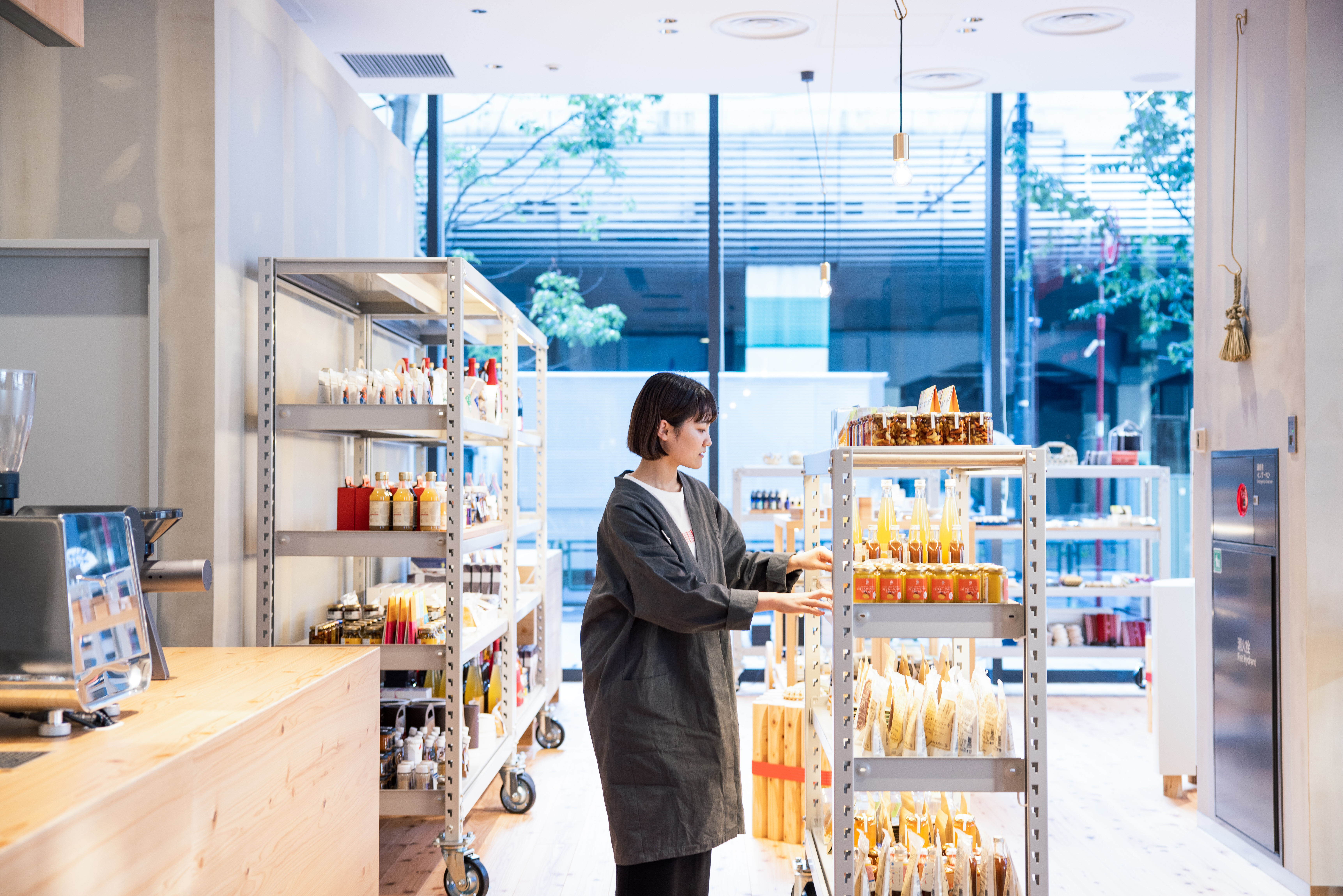 全国出身の学生が経営する47都道府県地域産品セレクトショップと、地域ごとの食を楽しめるカフェを併設する東京駅前のショップ&カフェ。