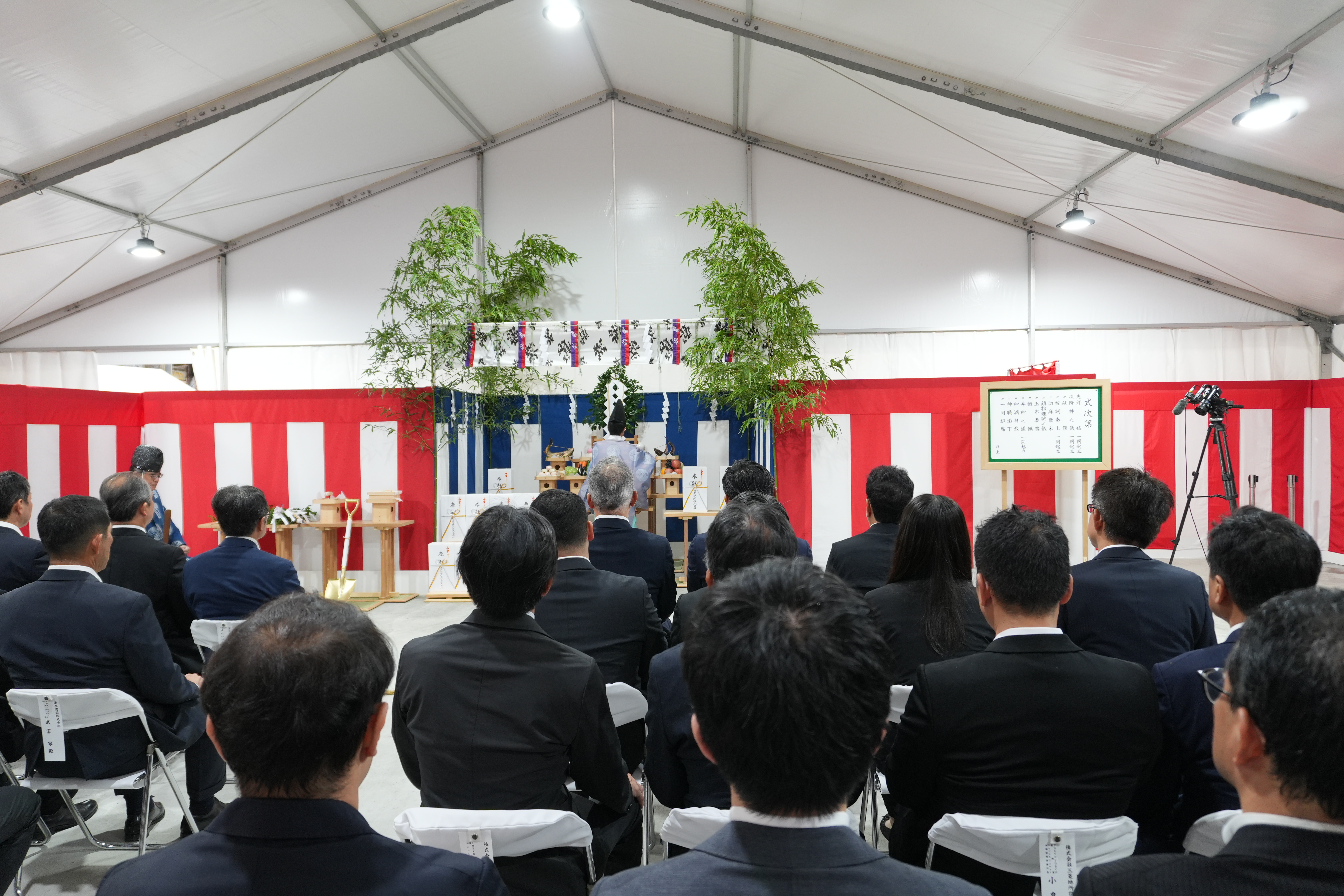 鎮物埋納式は、Torch Tower建設現場の最深部にあたる地点で執り行われ、”鎮物(しずめもの)”という土地の神様に対するお供え物を建物の基礎下に埋め、工事の安全を祈念しました。